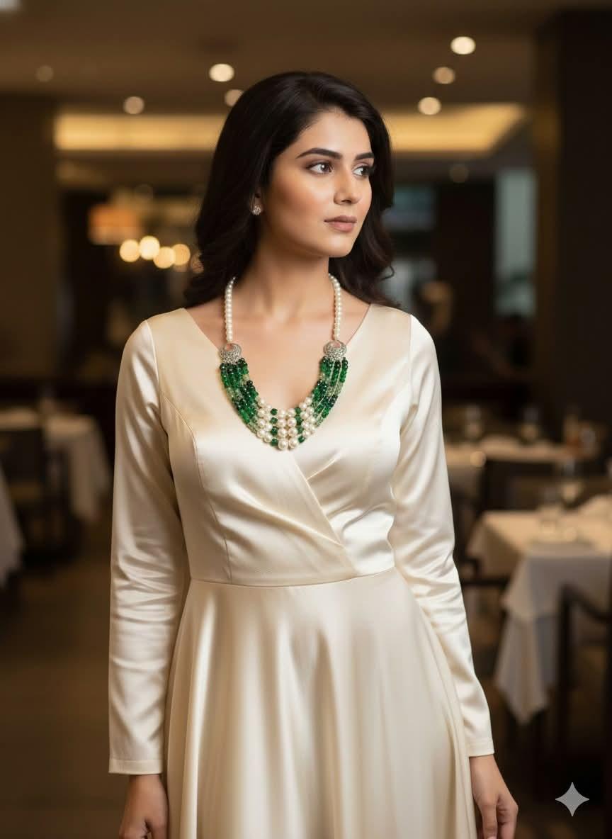 عقد لولي وعقيق ومرمر وكرستال