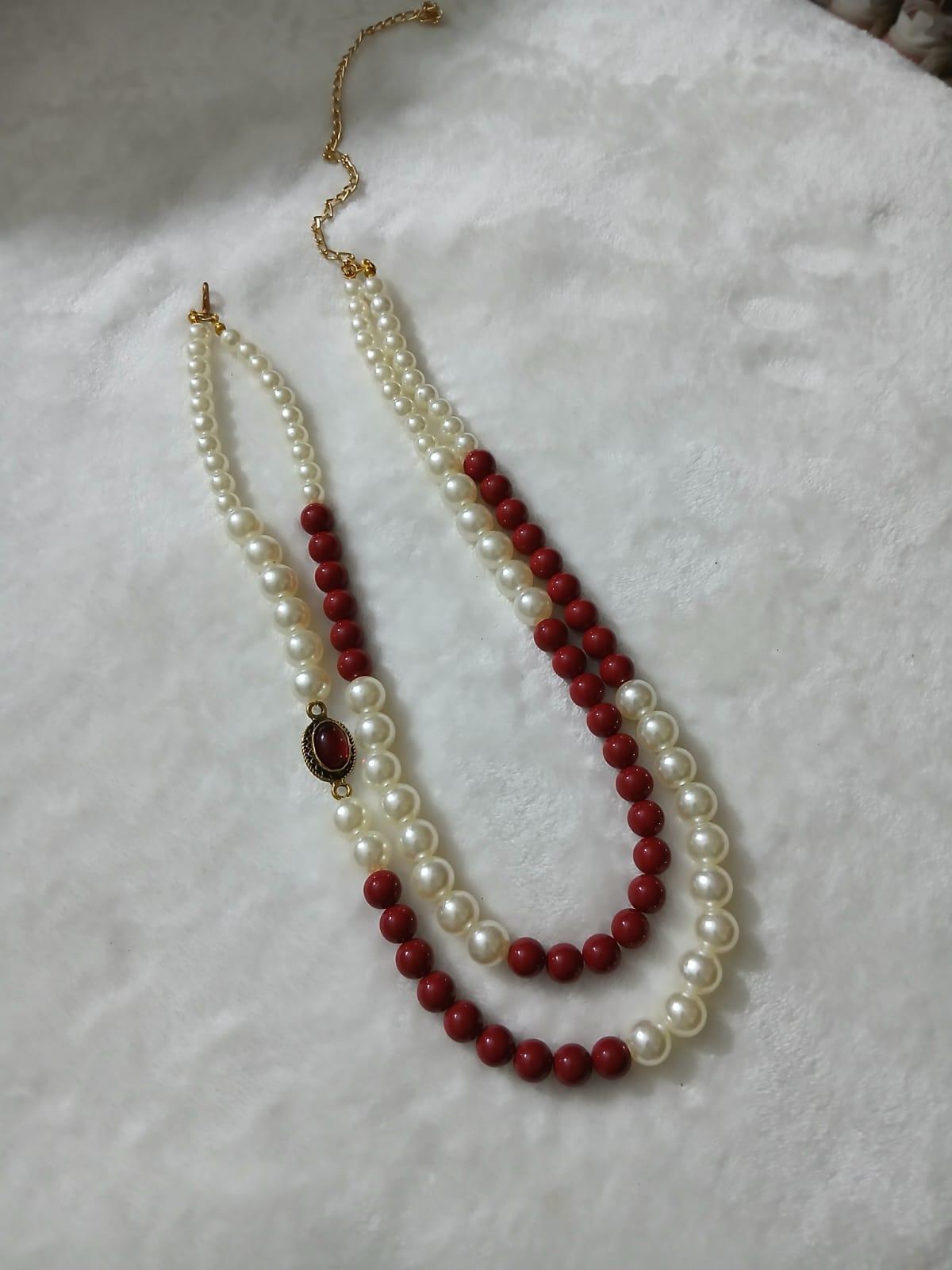 عقد لولي مايوركا احمر لولي اوف وايت دلايه نحاس بقلب عقيق