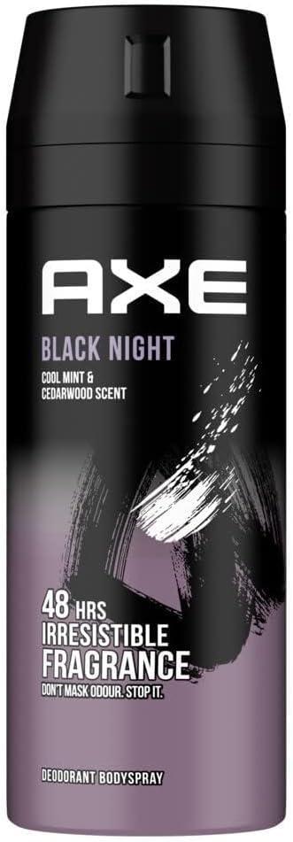 اكس بلاك نايت هو سبراي جسم ورائحة عطرية ذكورية من العلامة التجارية اكس يوفر حماية من العرق لمدة تصل إلى 48 ساعة . يأتي بحجم 150 مل ويتميز برائحة خشبية دافئة تتكون من مزيج من الهيل، وجذور الزنجبيل، والجريب فروت، مع لمسة من خشب الكشمير والفانيليا. المنتج مصمم للحفاظ على انتعاش المستخدم طوال اليوم ومظهره أنيقًا دون ترك آثار بيضاء.