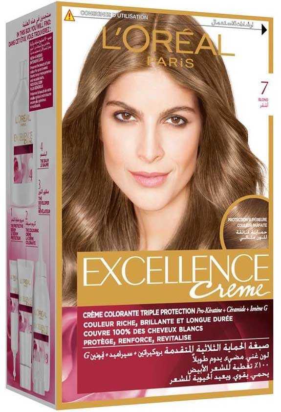 صبغة لوريال باريس إكسلانس 7 أشقر هي صبغة شعر دائمة ذات تركيبة العناية الثلاثية التي تغطي الشيب بنسبة 100%. تحتوي على مكونات مثل السيراميد والبرو-كيراتين والكولاجين لحماية الشعر وتغذيته أثناء التلوين وإضفاء لمعان عليه. توفر لونًا غنيًا وطويل الأمد، سهلة الاستخدام في المنزل، وتحافظ على صحة الشعر