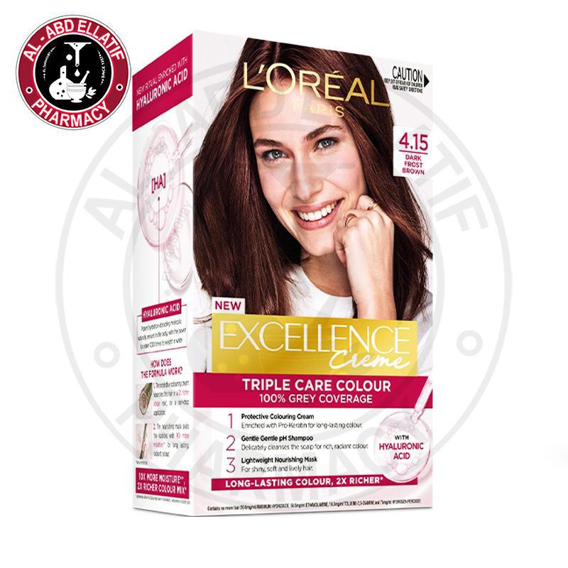 صبغة اكسلانس بني مجمد هي درجة من صبغة لوريال إكسلانس كريم، وهي درجة 4.15 التي يشار إليها باسم بني فاتن أو بني مجمد. تتميز هذه الصبغة بأنها دائمة، تغطي الشعر الأبيض بنسبة 100%، وتحتوي على تركيبة حماية ثلاثية قبل وأثناء وبعد التلوين، مع مكونات مثل السيراميد ، البرو-كيراتين ، و الكولاجين لتقوية الشعر وتغذيته وتركه أكثر نعومة ولمعانًا.