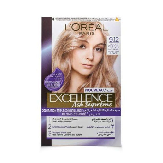 صبغة اكسلانس 9.12، أو الأشقر اللؤلؤي الرمادي الفاتح، هي صبغة دائمة تغطي الشعر الأبيض بنسبة 100% وتوفر لونًا يدوم طويلًا