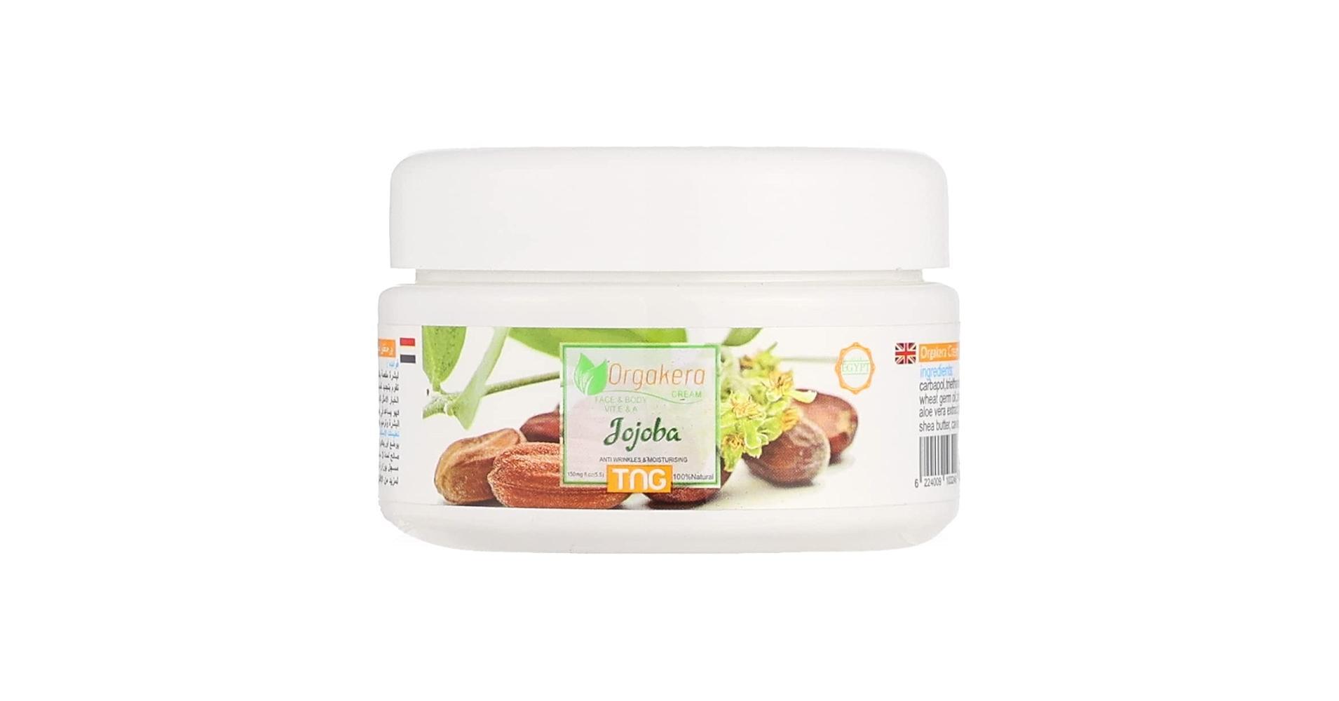 كريم أورجاكيرا بزيت الجوجوبا بحجم 150 مل هو كريم مرطب للوجه والجسم يحتوي على فيتامينات (E و B) ومضادات أكسدة ومعادن مثل الزنك، مما يساعد على ترطيب البشرة وتنعيمها وتقوية حاجزها الواقي. كما يحتوي على السيراميدات التي تحافظ على الماء داخل البشرة، ويمكن استخدامه لمكافحة علامات الشيخوخة.