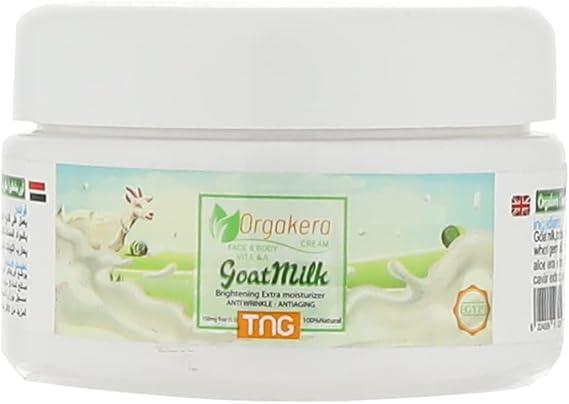كريم للوجه والجسم بفيتامين E وA (حليب الماعز) لتفتيح البشرة مرطب إضافي مضاد للتجاعيد والشيخوخة، طبيعي بنسبة 100% بتركيز 150 مجم من اورجاكيرا، عبوة من قطعة واحدة