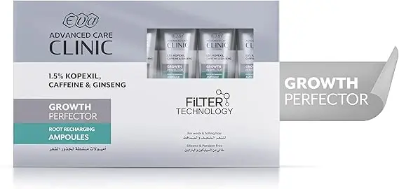 أمبولات "إيفا كلينك" منشط جذور الشعر هي عبارة عن 7 أمبولات تحتوي على تركيبة مصممة لتقوية الشعر وتقليل تساقطه وتعزيز نموه، وذلك بفضل مكوناتها الرئيسية مثل الكوبكسيل والكافيين وخلاصة الجينسنغ. تُستخدم هذه الأمبولات لتحسين