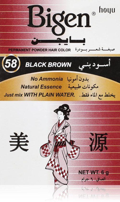 صبغة بايجن بودرة د رقم 58 أسود بني (Black Brown) تمنحك لوناً غنياً يجمع بين فخامة اللون الأسود ودفء البني ليضفي على إطلالتك مظهراً طبيعياً أنيقاً. هذه الدرجة الرائعة تناسب النساء والرجال على حد سواء، حيث تعكس لمسة كلاسيكية تناسب جميع المناسبات اليومية والرسمية. تركيبة الصبغة مستوحاة من التكنولوجيا اليابانية المتطورة وتتميز بخلوها من الأمونيا، مما يجعلها لطيفة على فروة الرأس وآمنة على