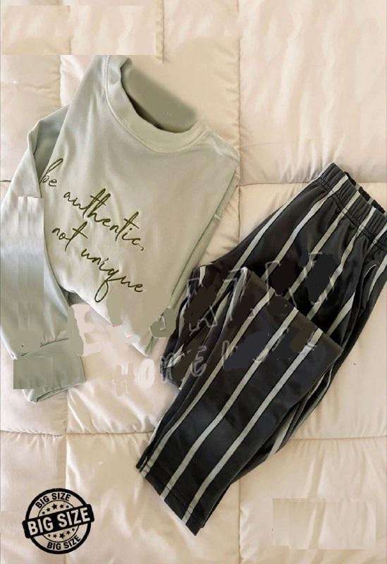 بجامة قطيف زيتي فاتح في بنطلون مقلم