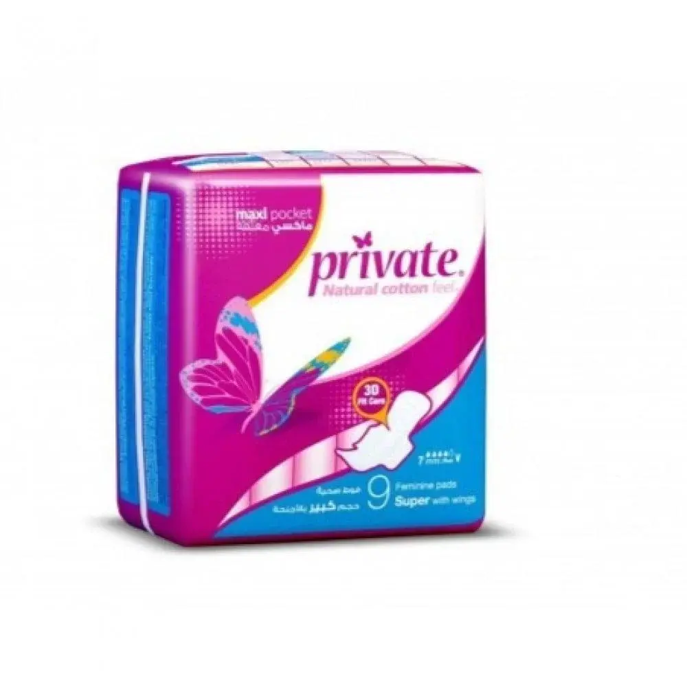 فوط صحية برايفت ماكسي مغلفة حجم كبير - 9 فوط