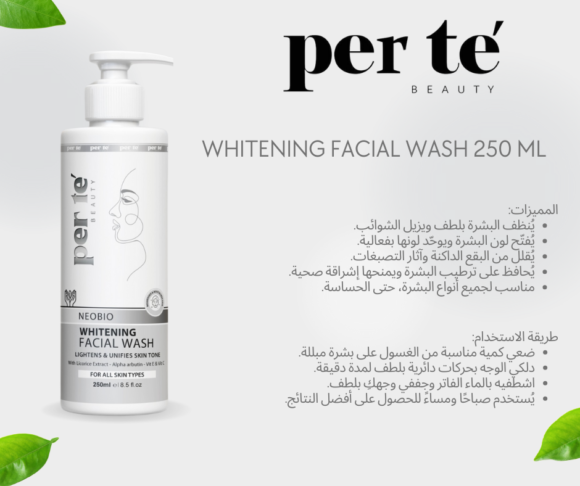 غسول الوجه لتفتيح البشرة من بيرتي مصمم خصيصًا لتنظيف البشرة بعمق وإزالة الشوائب مع تفتيح لون البشرة ومنحها إشراقة طبيعية. بفضل تركيبته الغنية بمكونات تفتيح طبيعية، يعمل على توحيد لون البشرة وتقليل البقع الداكنة ليترك بشرتك نقية، مشرقة، ومنتعشة طوال اليوم.