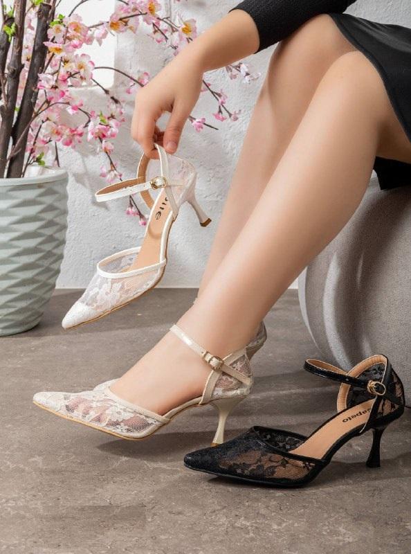 هيلز فليه دانتيل كعب رفيع الوان