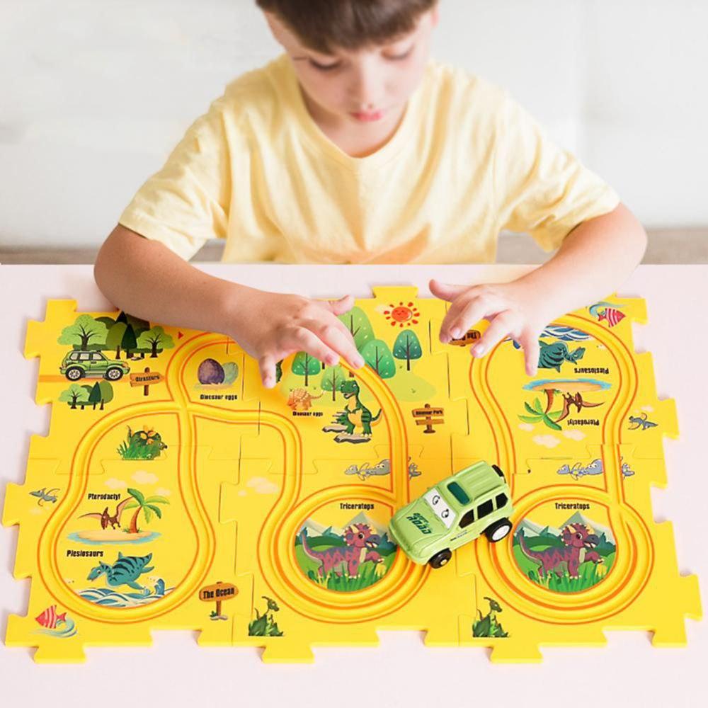 لعبة تعليمية ممتعة للأطفال تعتمد على تركيب قطع بازل لتكوين طريق، ثم تحريك السيارة أو الطائرة فوق المسار.
