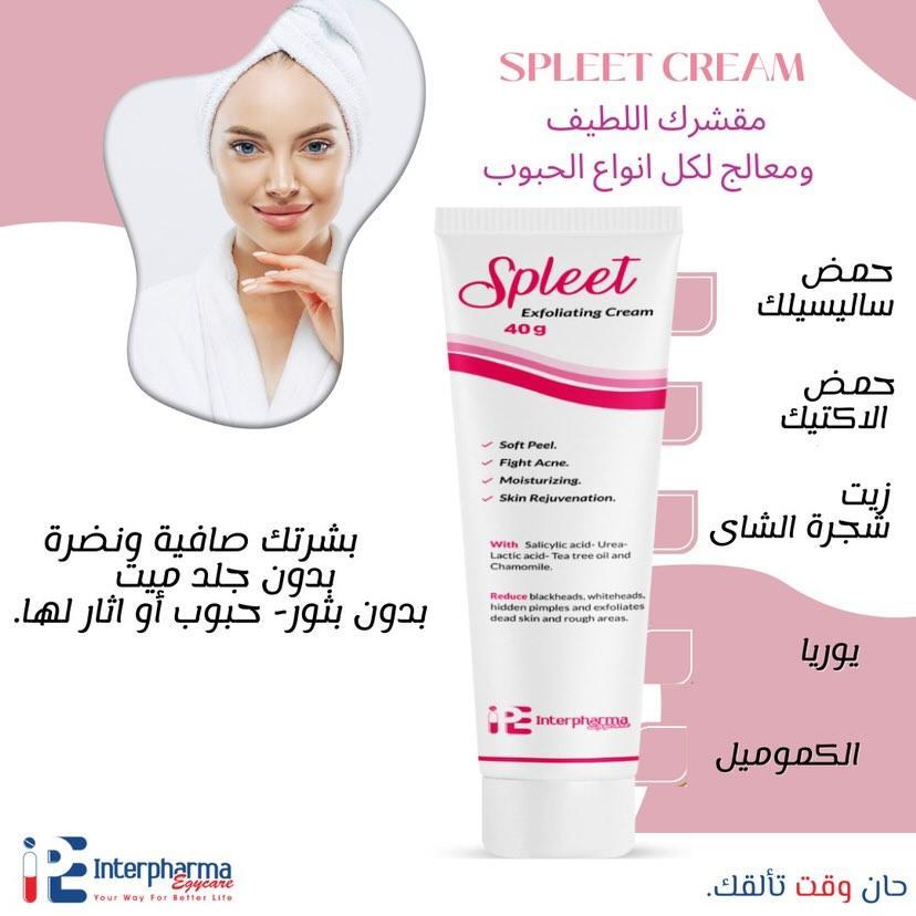 كريم سبلييت مناسب للاستخدام على الوجه، الجسم، الظهر، المؤخرة، والمناطق الحساسة، ويعمل أيضًا على توحيد لون البشرة وتنعيمها بفضل قدرته على إزالة الجلد الميت وتجديد الخلايا