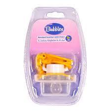 سكاتة بابلز بلون اصفر مصممة للأطفال من عمر 3 شهور فما فوق، وتأتي مع سلسلة لحمايتها من الضياع أو السقوط. تتميز بخامتها المصنوعة من السيليكون المقاوم للبكتيريا، والتي تساعد على دعم نمو أسنان الطفل وتوفر له نوماً هادئاً