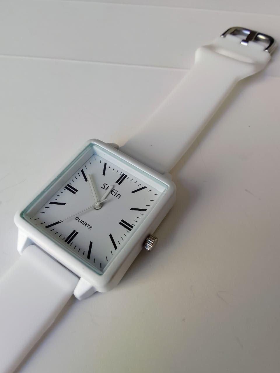 ساعة يد مربعة بيضاء