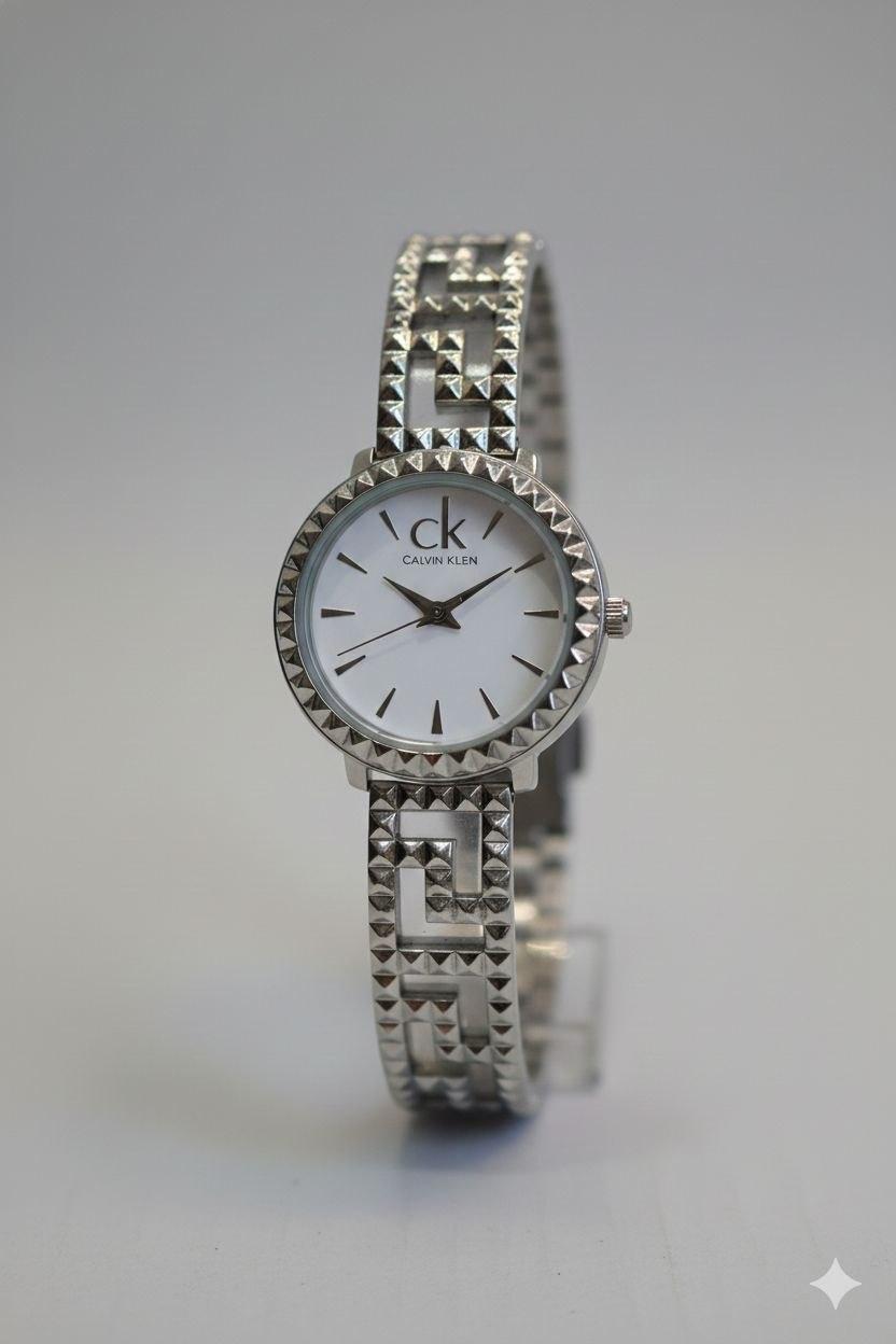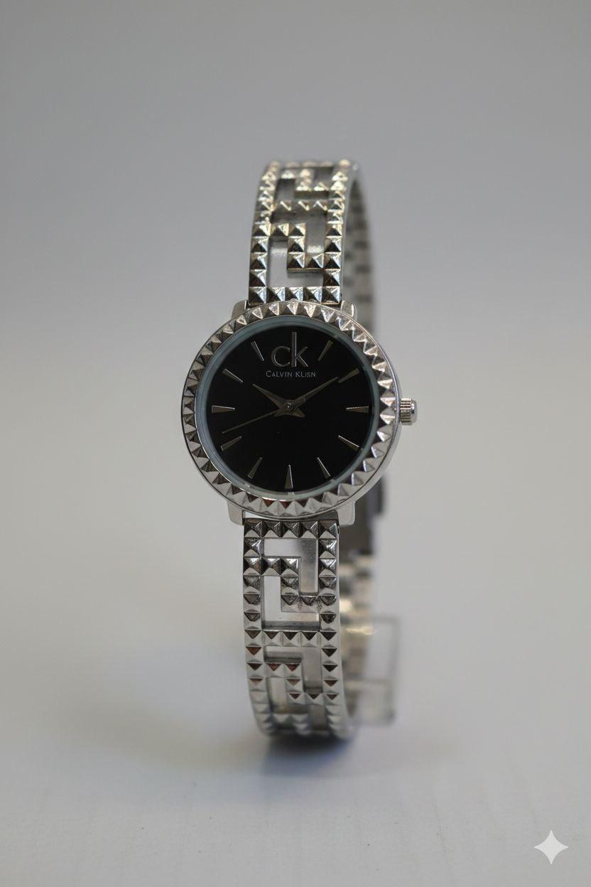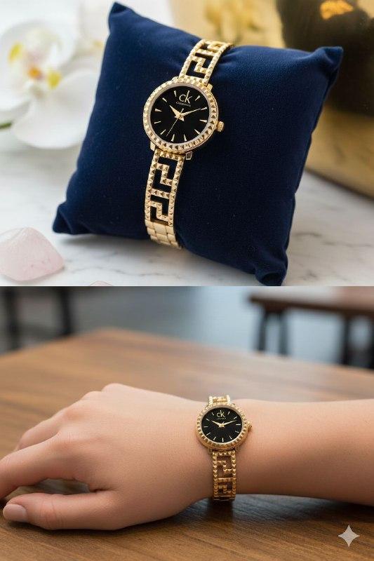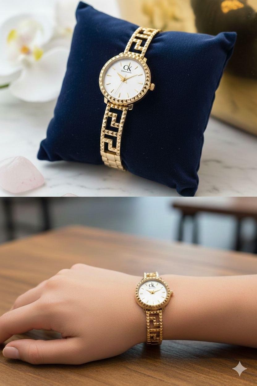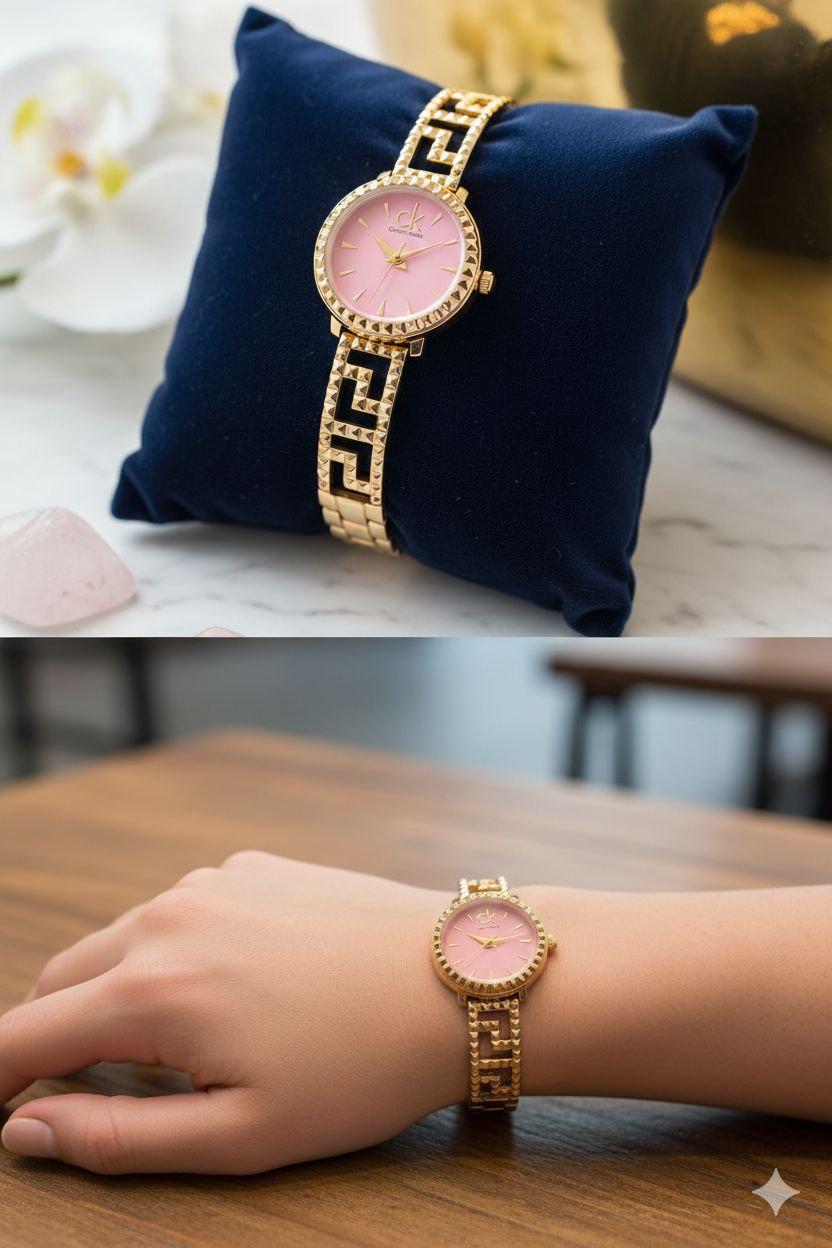 ساعه فضي وذهبي الوان استيك معدن مضلع