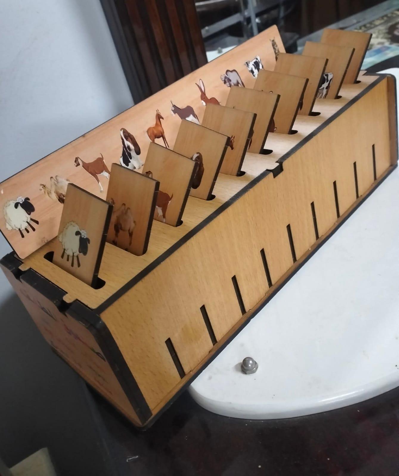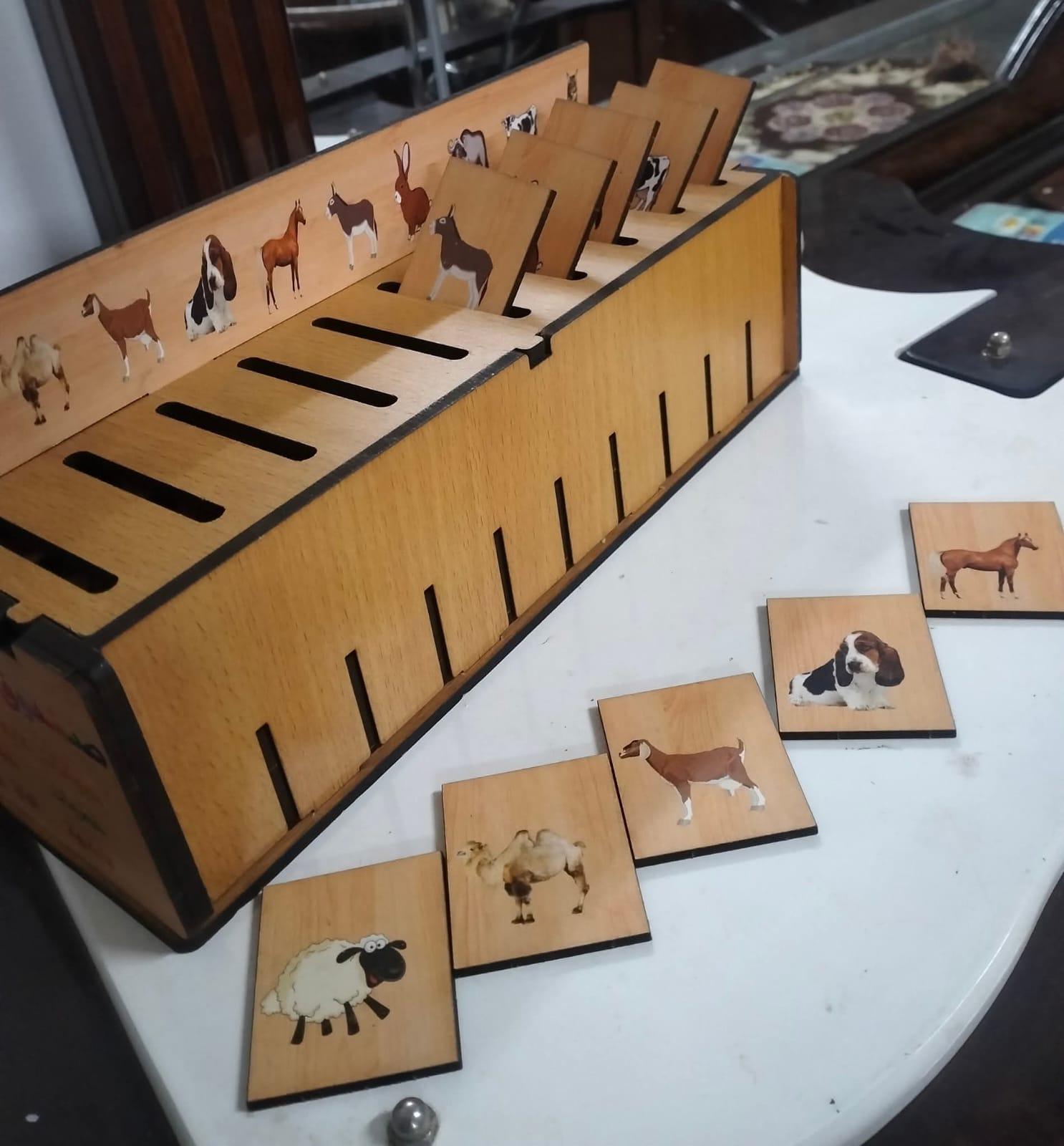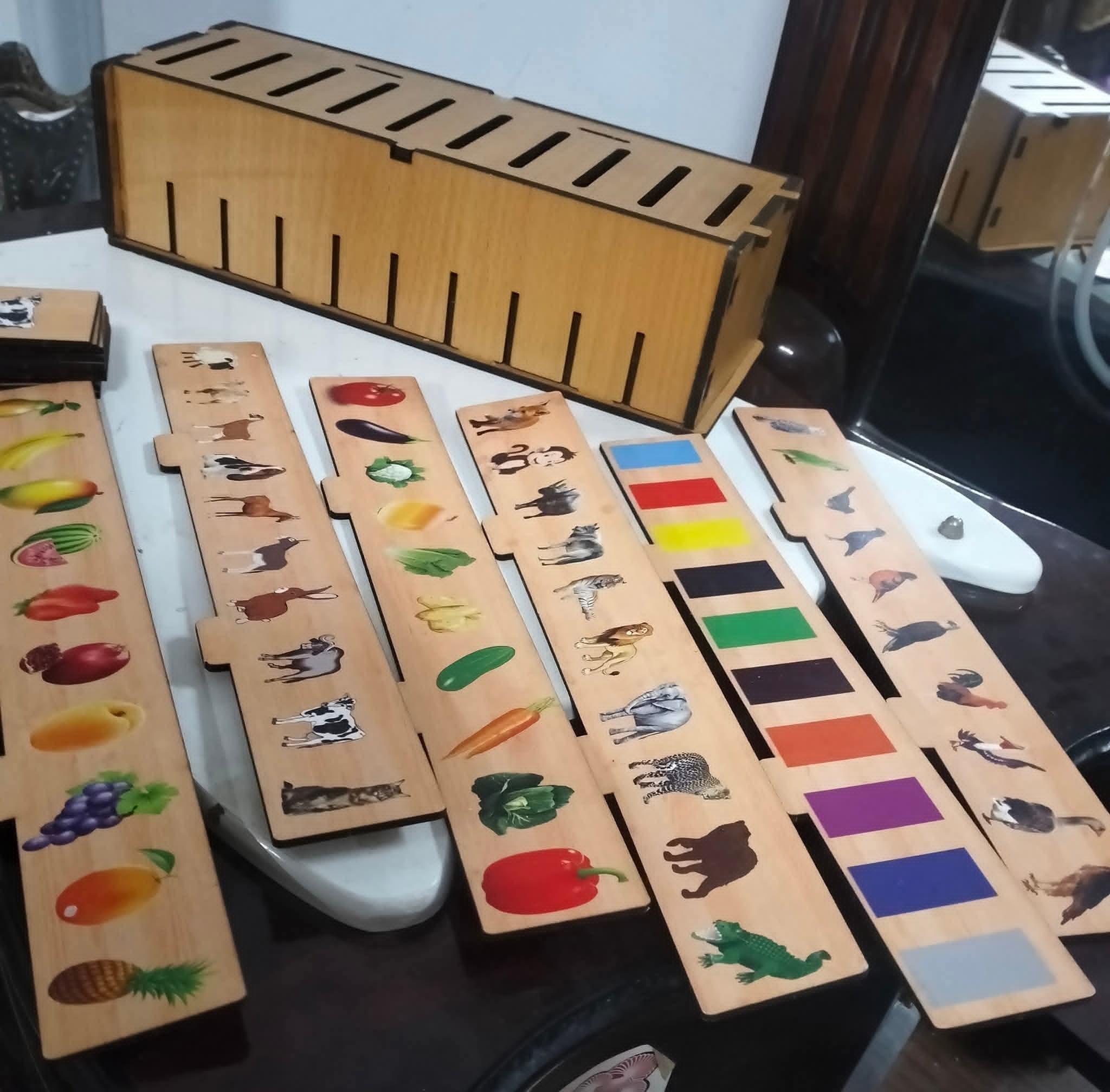 الخامة خشب طبيعي متين جدًا 🔒، والصور واضحة وألوانها زاهية وأقرب ما يكون للحقيقة 🍎🐄🌈