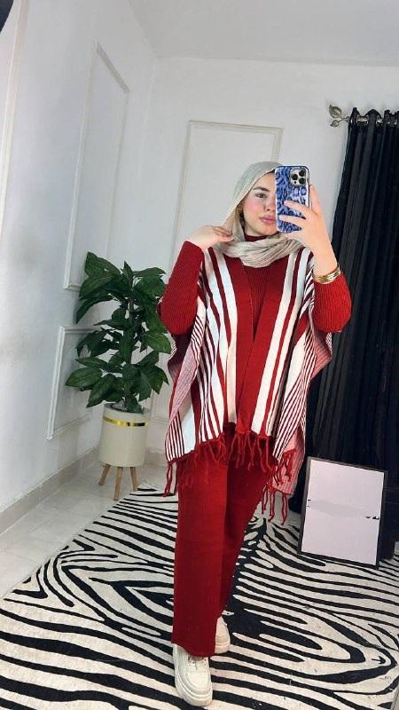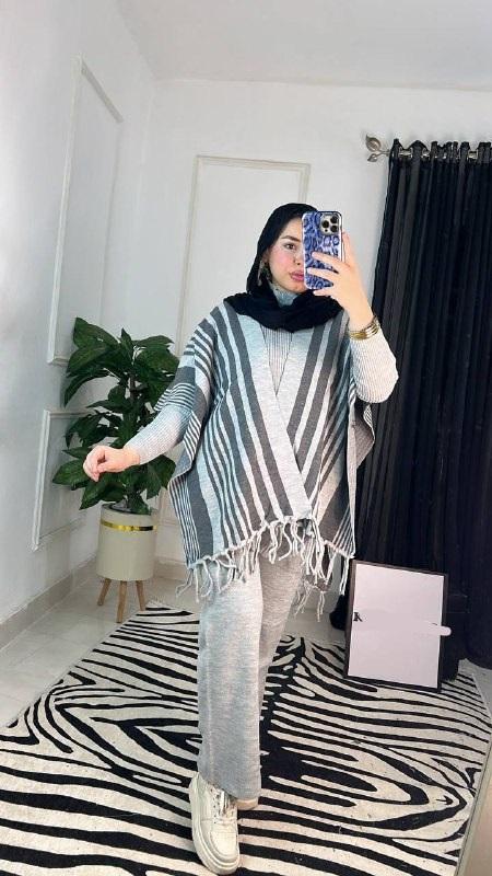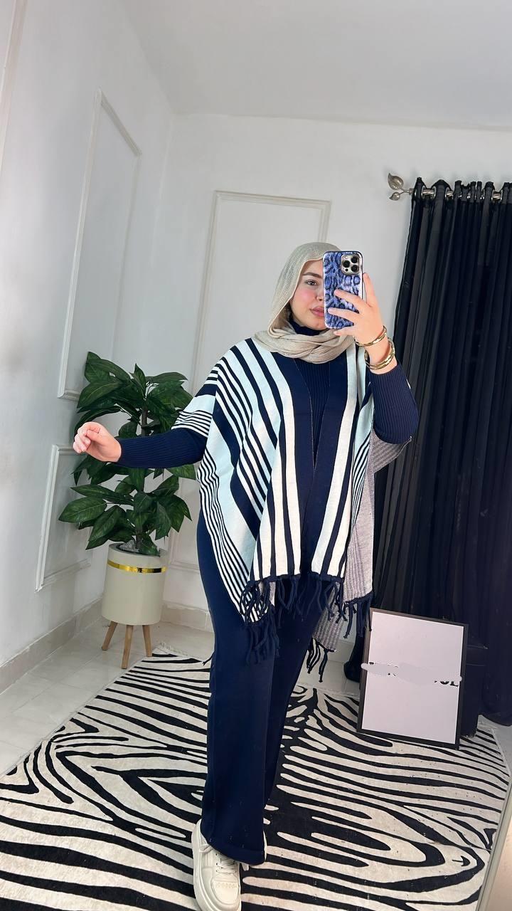 السوت 3 قطع ساده في شال بشراشيب