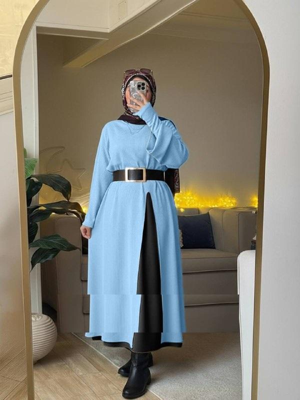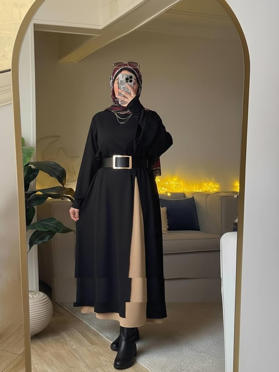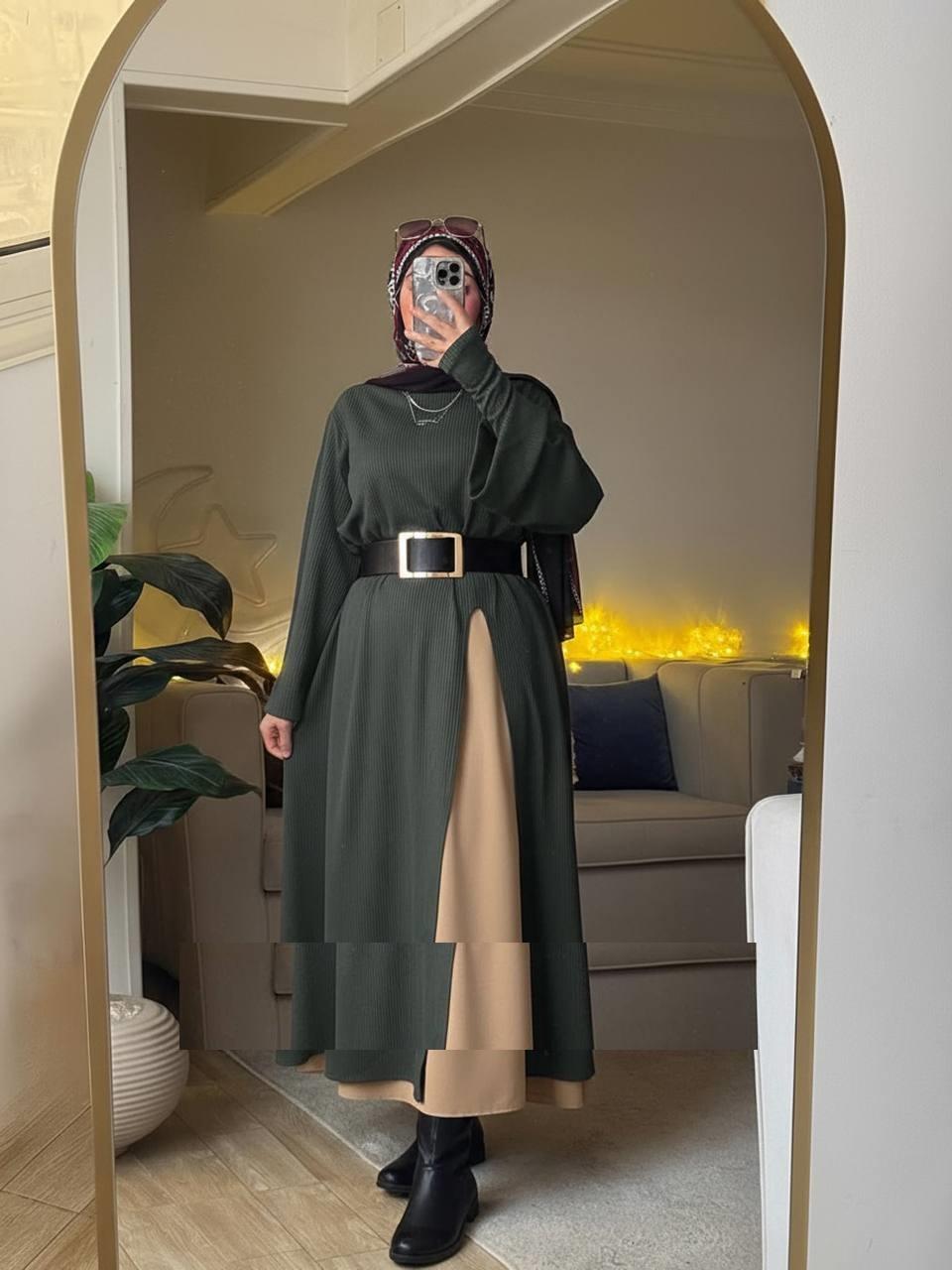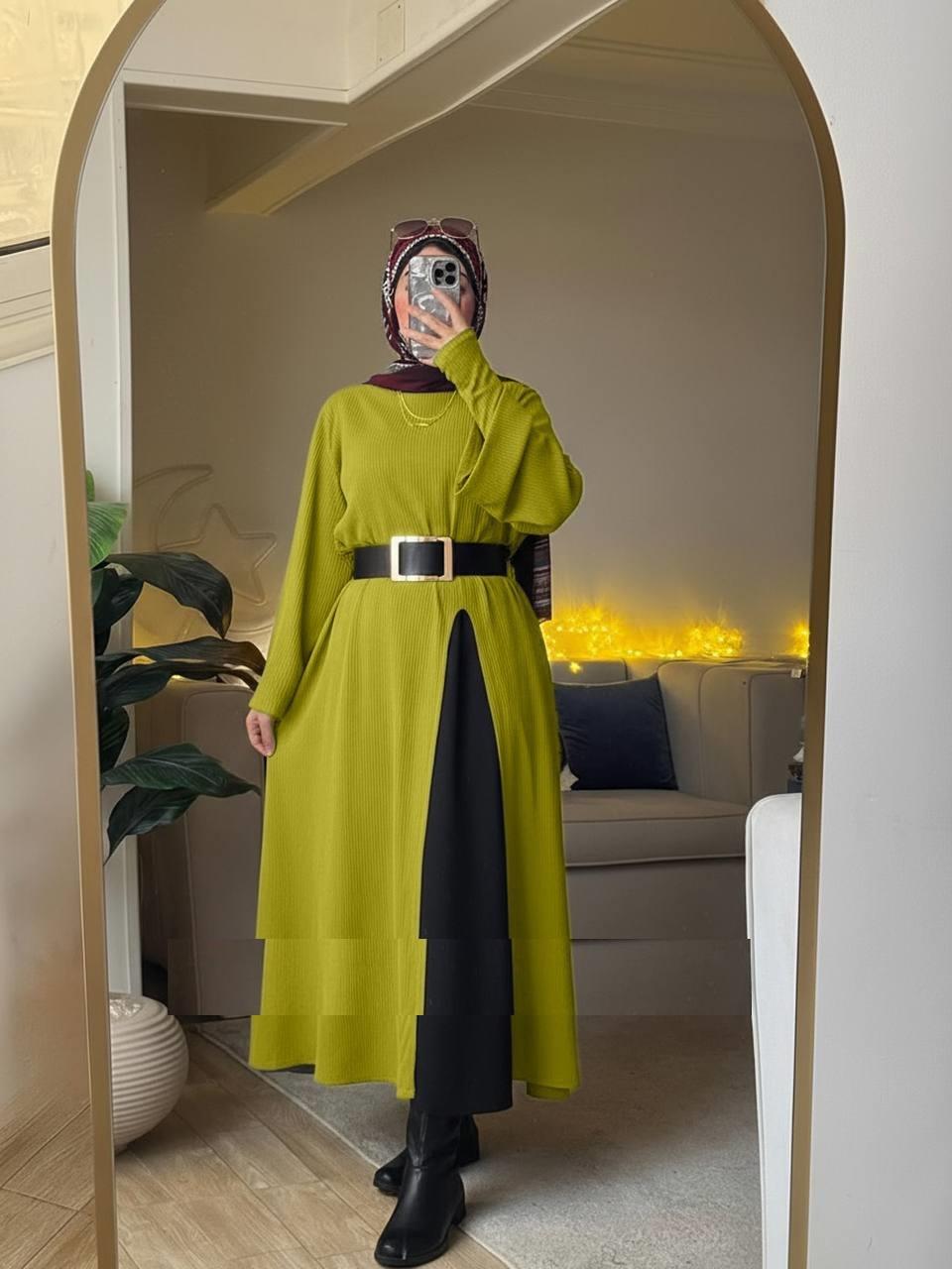 تونيك فتحه من ع الجنب و جيبه وحزام ومعصمين