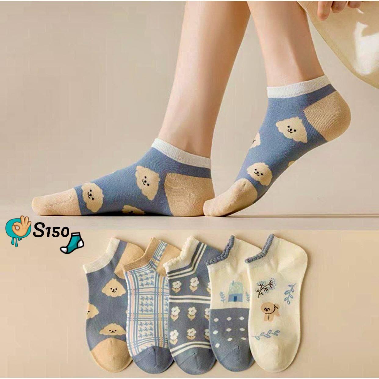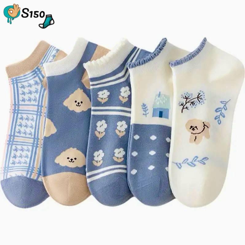 6 قطع شراب حريمي انكل اشكال ابيض في ازرق