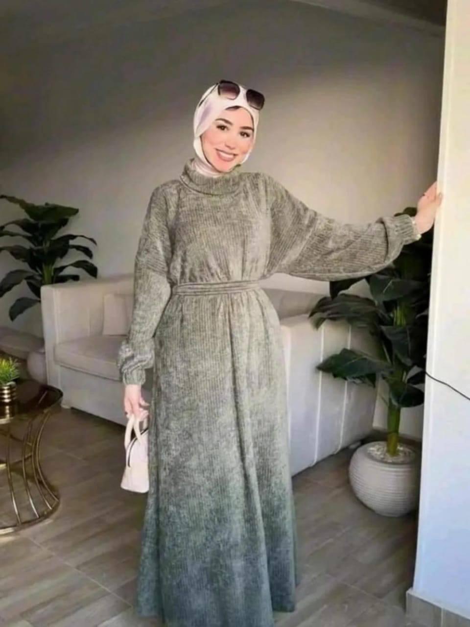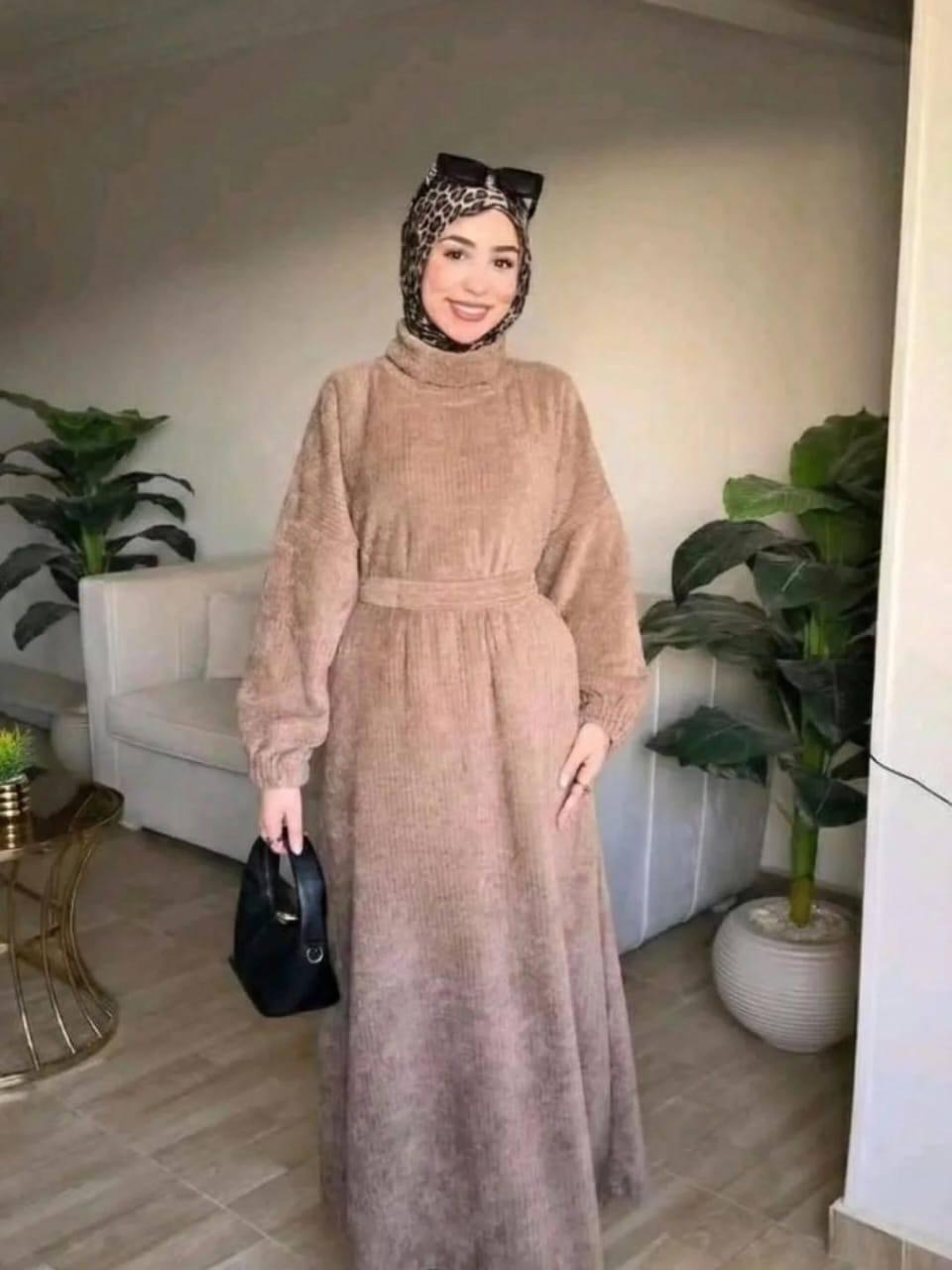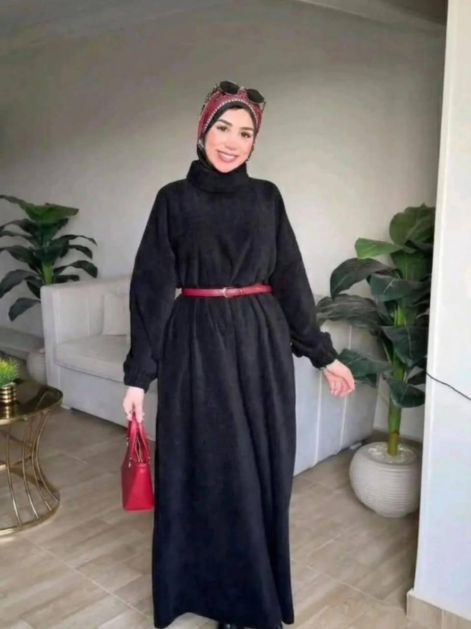 فستان قطيفه مضلع حزام مستورد
