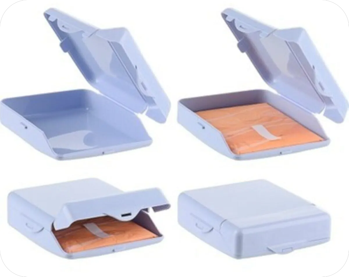 يمكن وضع صندوق الفوط الصحية بسهولة في أي حقيبة ويمنع وقوع حوادث بسيطة عن طريق إخفاء الفوط الصحية التي يجب على النساء الاحتفاظ بها باستمرار.