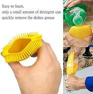 ليفة غسيل الصحون سيليكون 3 × 1 بمقشطة وخزان للصابون أصفر صنع فى الصين