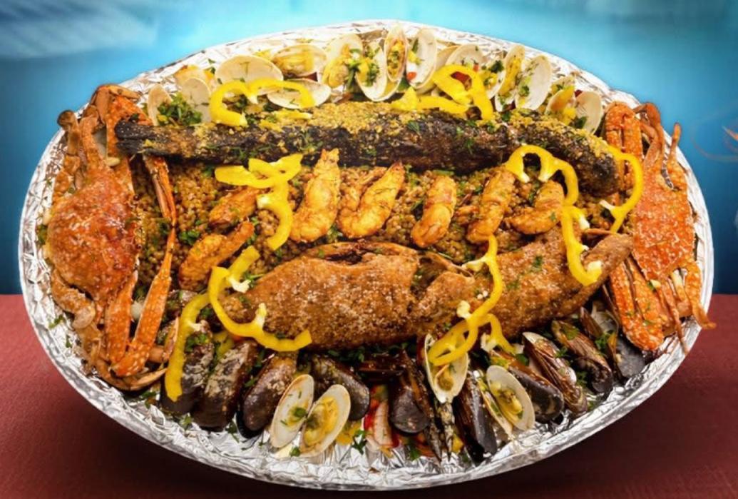 جندوفلى + جمبري مشوى + 2 كابوريا مشوية + 2 بورى + 2 بلطى + 4 أرز + 2 طحينة + 2 سلطة