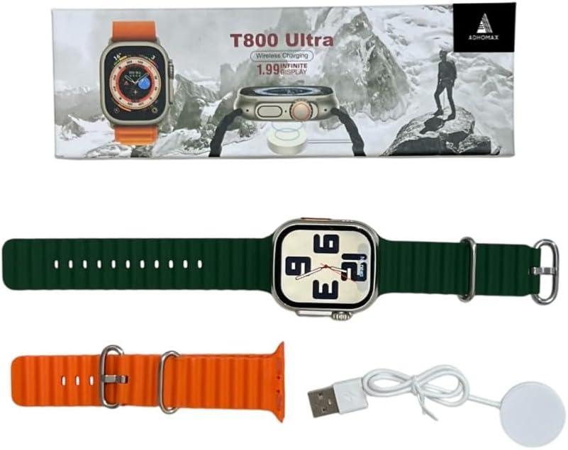 ساعة ذكية جديدة T800 الترا من ادهوماكس، شاشة 2 انش HD، متتبع اللياقة البدنية، مراقب معدل ضربات القلب، مراقبة الاكسجين، المكالمات، شحن لاسلكي، تعمل مع IOS واندرويد للرجال والنساء (1، برتقالي واخضر زيتي)