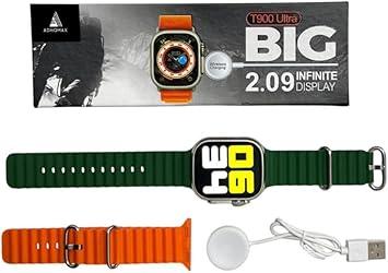 ساعة ذكية جديدة T900 الترا من ادهوماكس، شاشة HD 2.1 انش، ان اف سي، متتبع اللياقة البدنية، معدل ضربات القلب، مراقب الاكسجين، المكالمات، شحن لاسلكي | IOS واندرويد للرجال والنساء (1، برتقالي+اخضر زيتي)