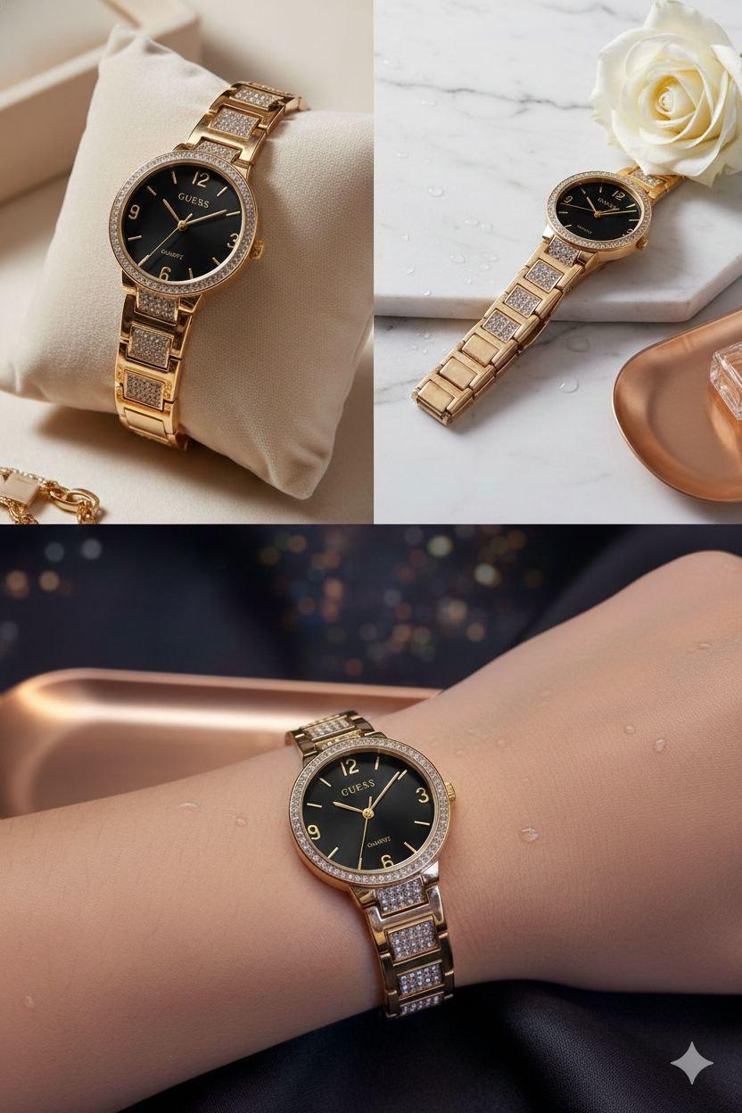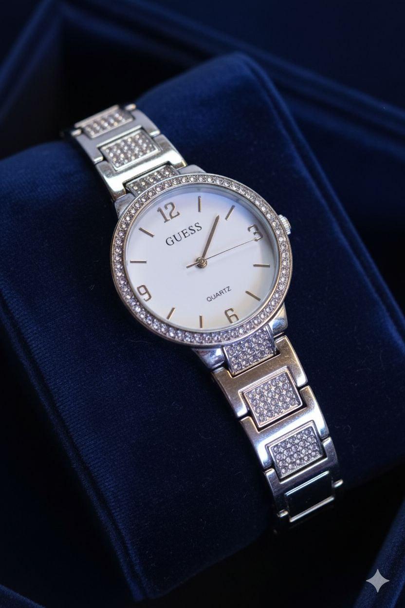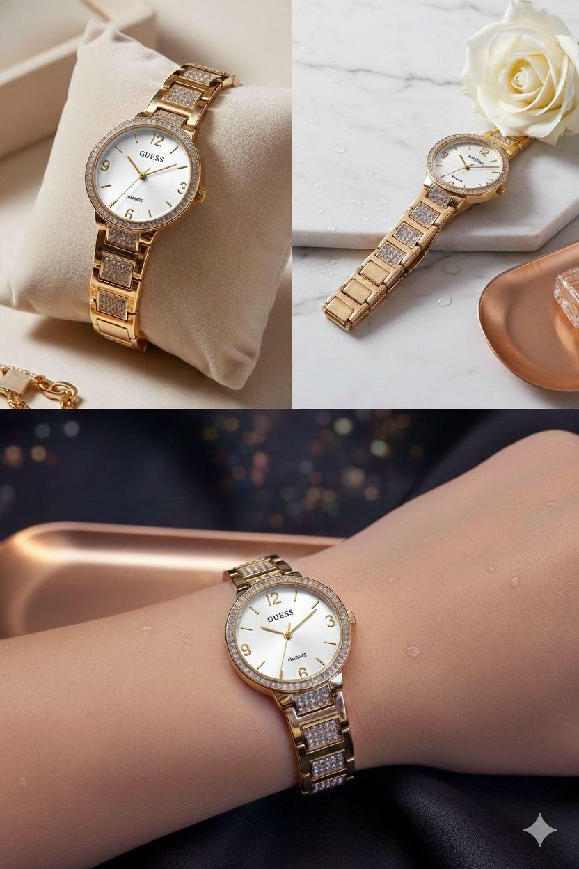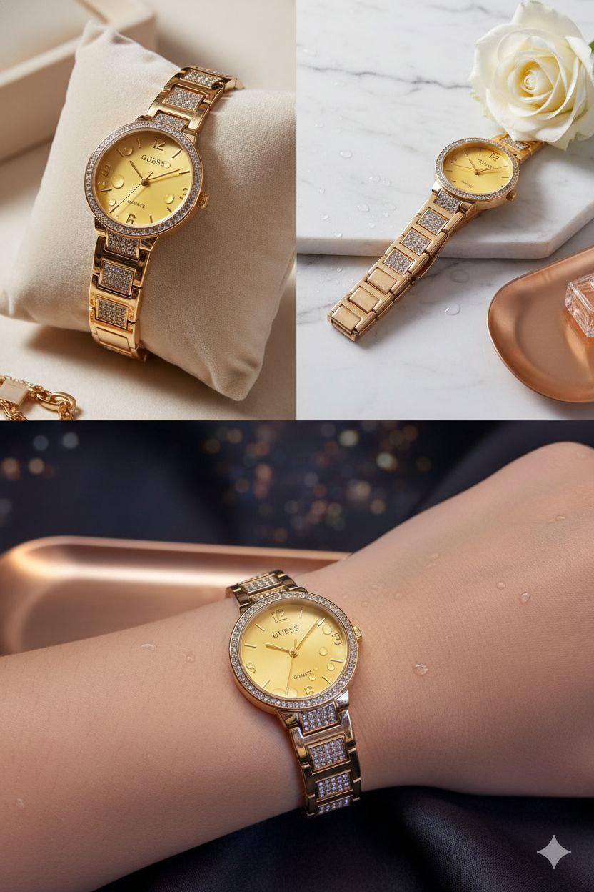 ساعه معدن استيك مربع استرس ذهبي وفضي