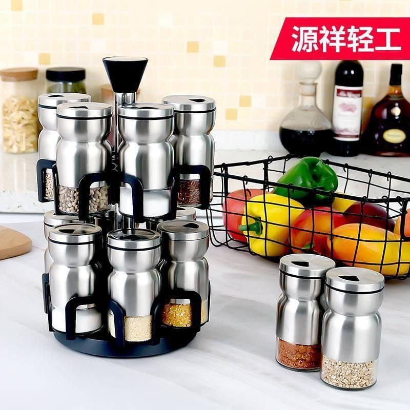 طقم توابل استنلس استيل بحامل 12 قطعه